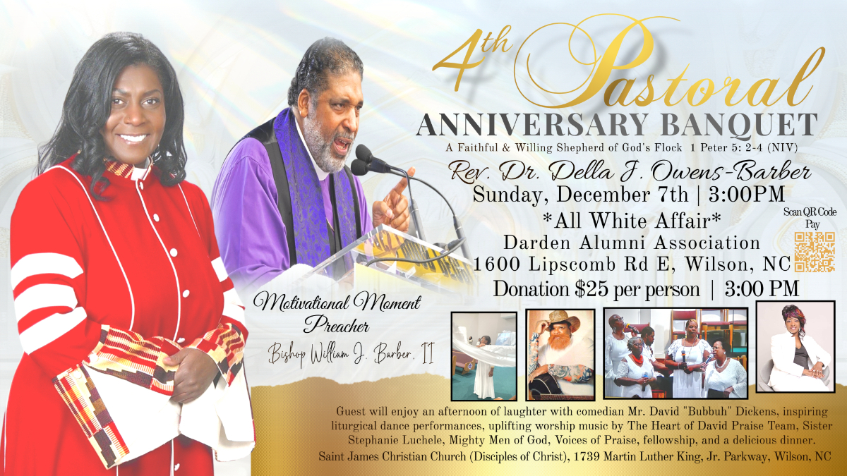 Come out and celebrate Pastor Owens-Barber's 4th pastoral Anniversary. Enjoy Music and Worship at the Darden Alumni Center.